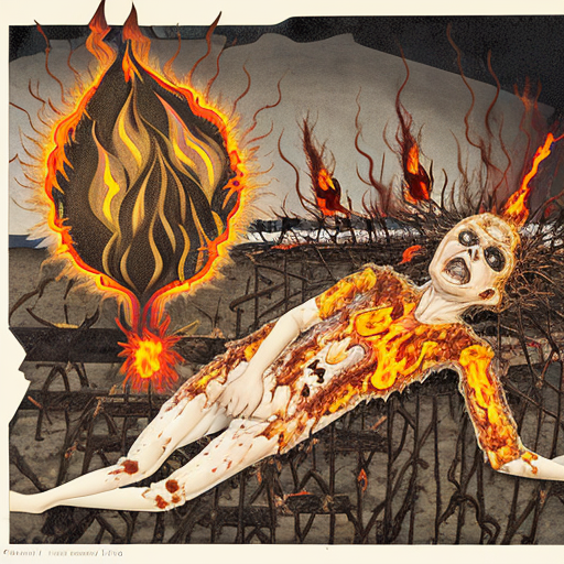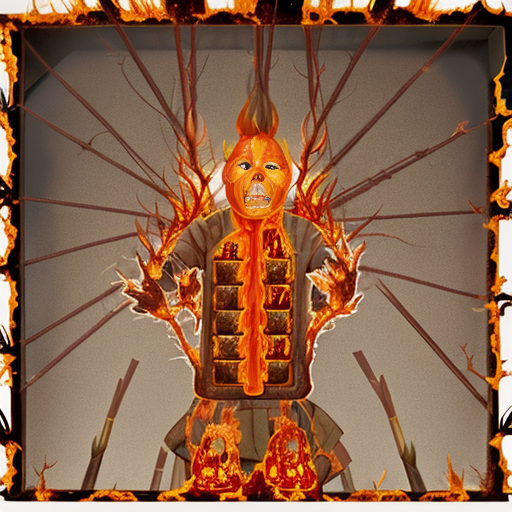 At first I just saw this an interesting mixture of fire, and symbols, only later did I see the body behind the picture