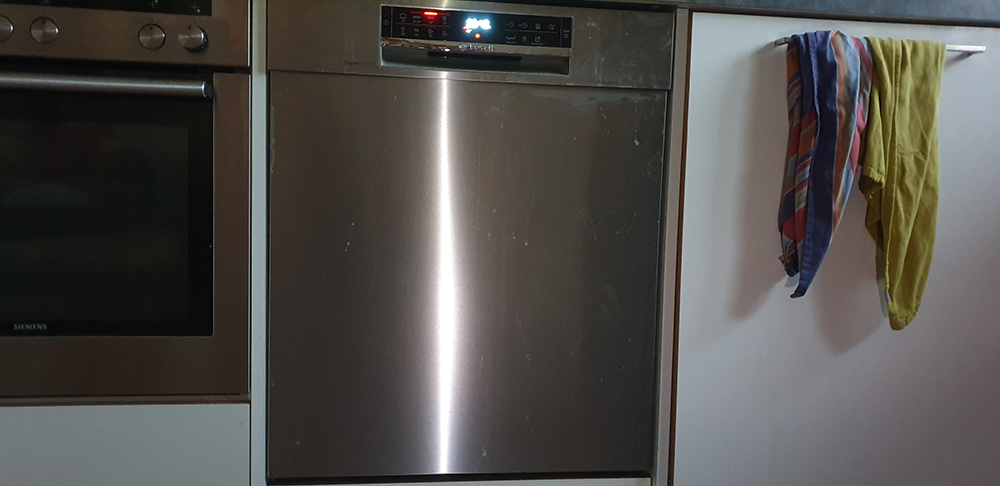 shining a projector light into brushed metal of my stove. The bright point of light spreads across the brushed metal and makes a stripe