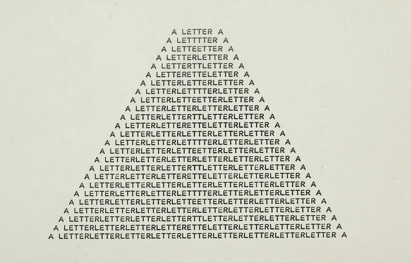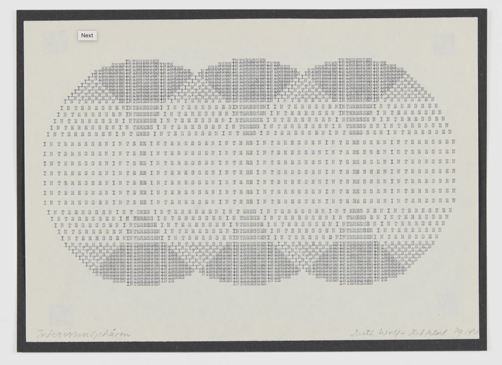 saw works from Ruth Wolf-Rehfeldt in Hamburger Bahnhof. Typewriter works. Simple beautiful structures. Thought maybe this is a good idea f text moments.