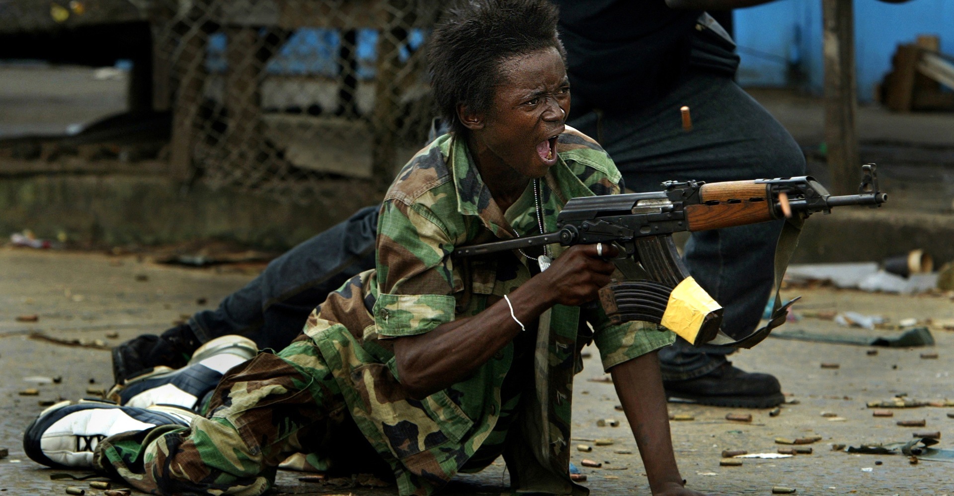 Action photo featuing gun.Civil War in Liberia, Carloyn Cole