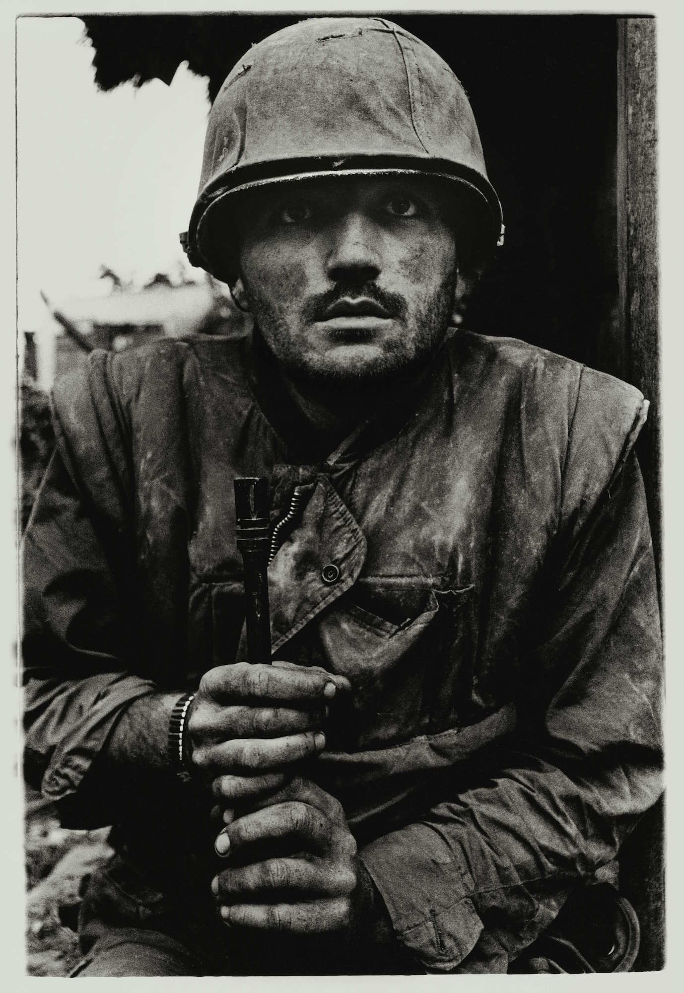 famous photo of a marine Don McCullin, Soldiers faces, just staring could be interesting.
