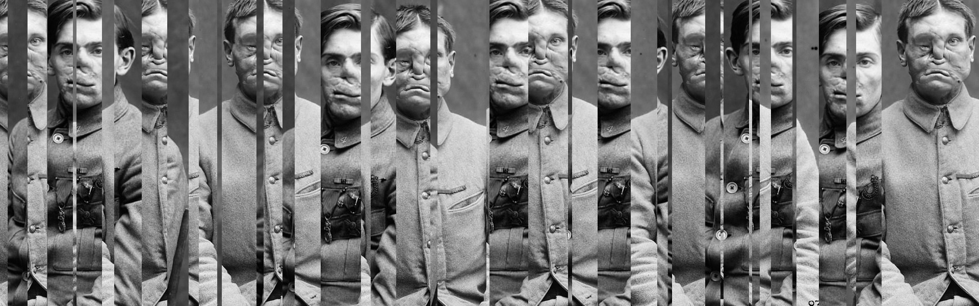 Then tried repeating an image,following an idea form Daniel, wounded faces form ww1.